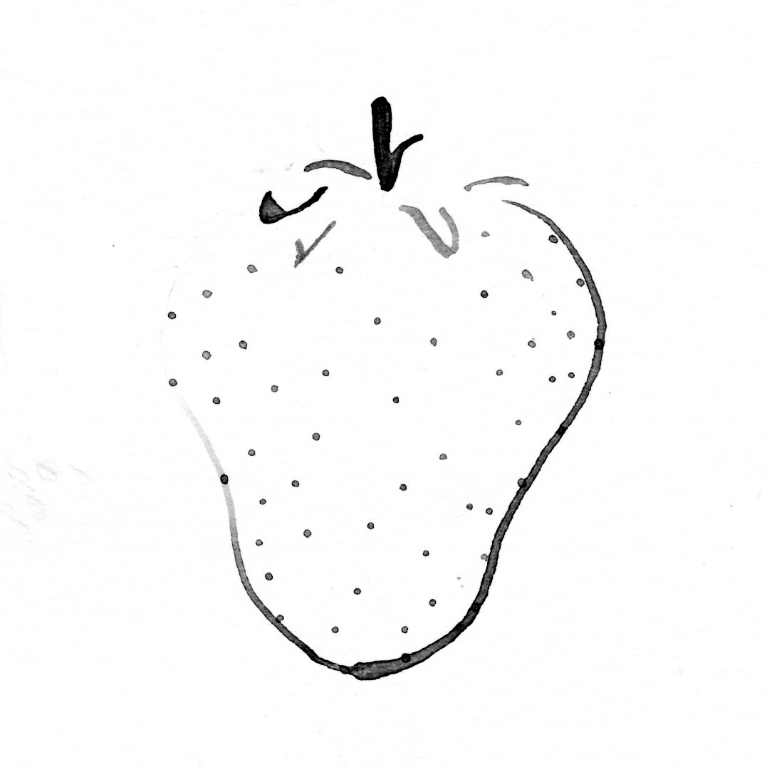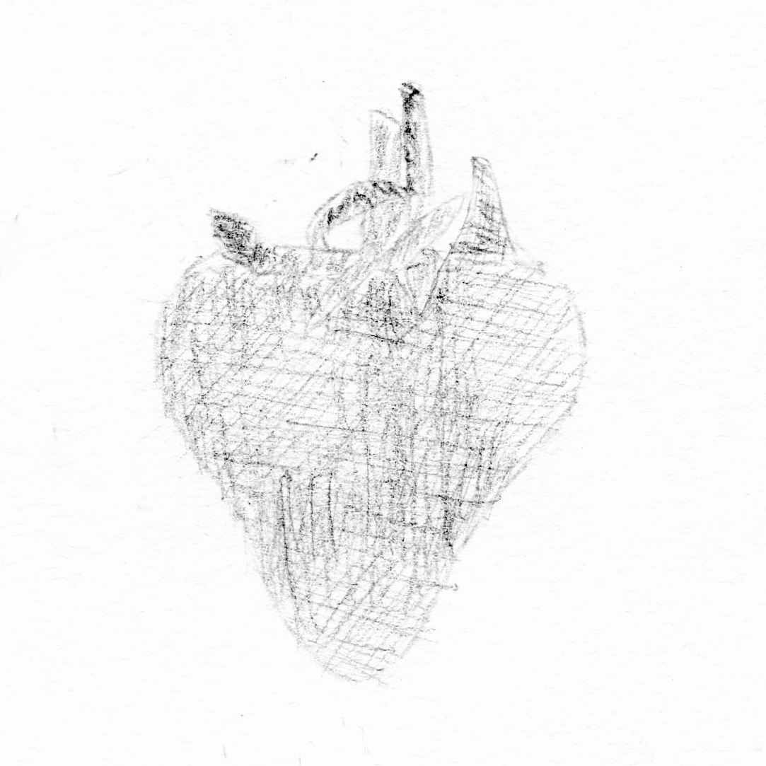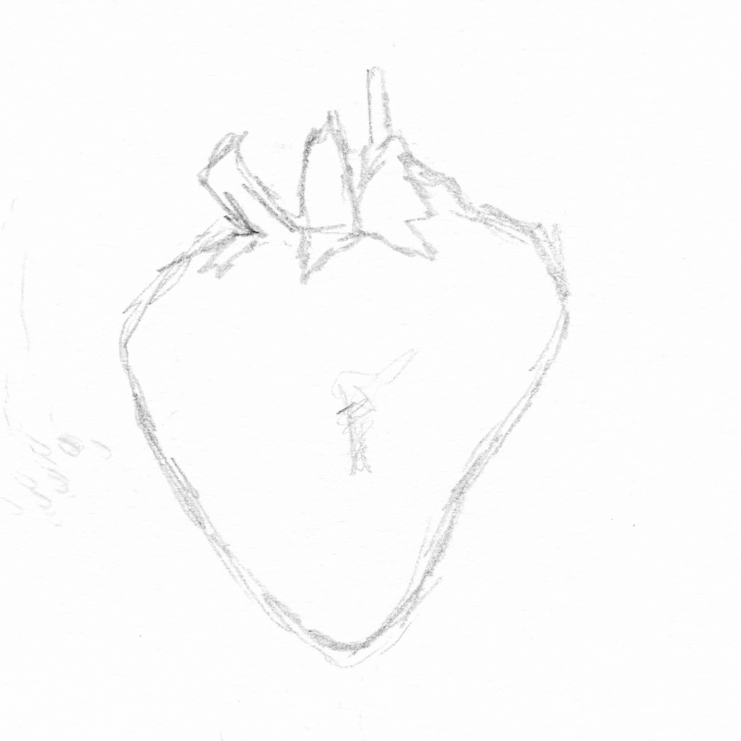 A study examining the shape of a strawberry. Using analogue techniques such as sketching, painting, cutting, tearing, gluing and folding, the focus lies on the quality of diversity.