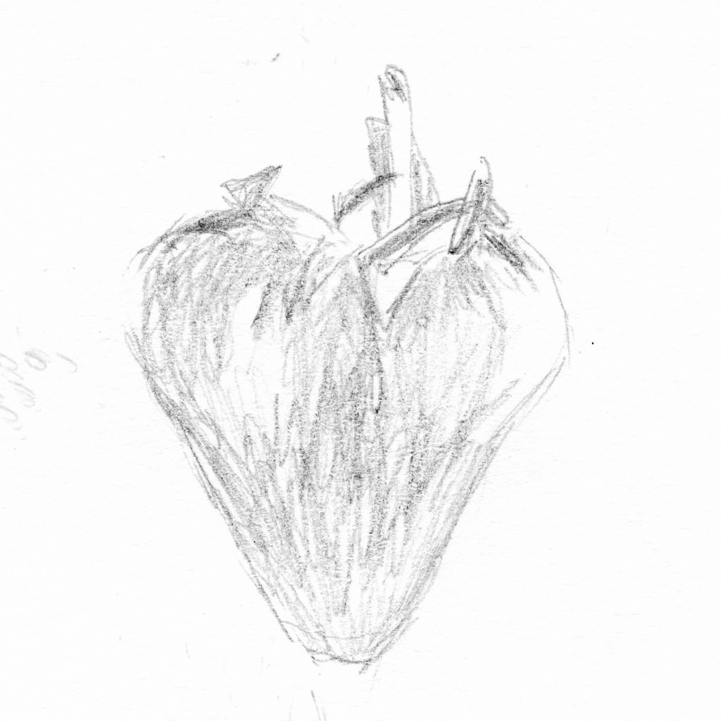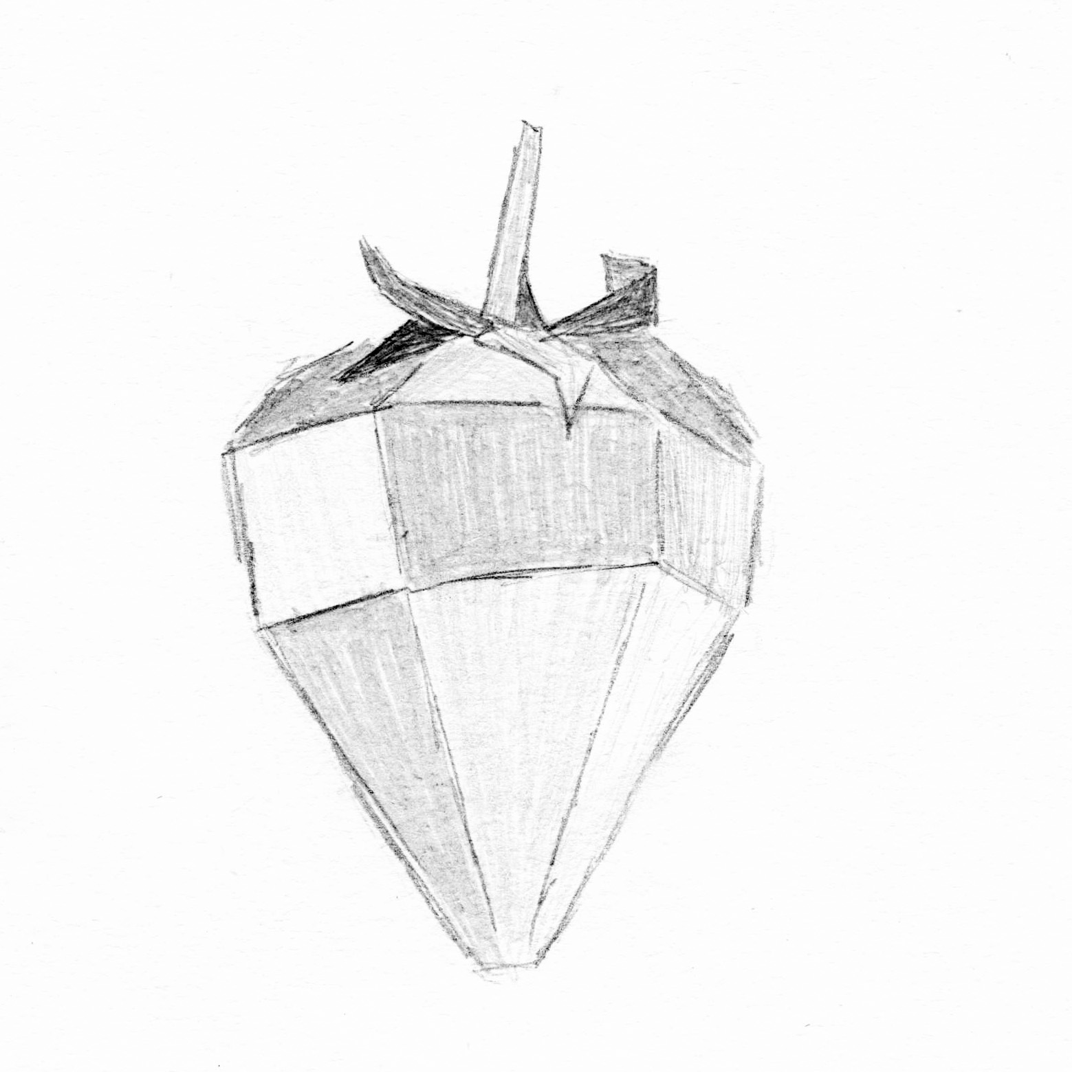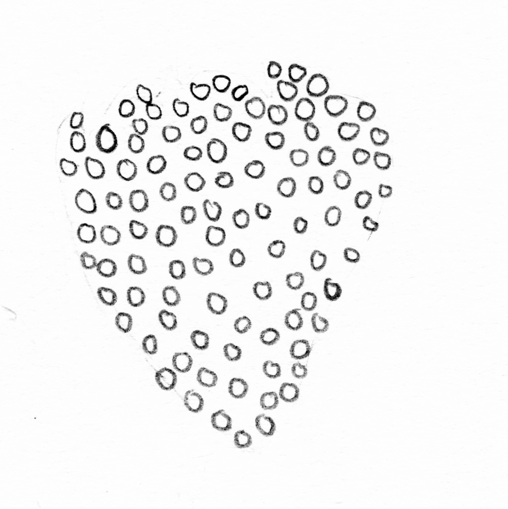 A study examining the shape of a strawberry. Using analogue techniques such as sketching, painting, cutting, tearing, gluing and folding, the focus lies on the quality of diversity.